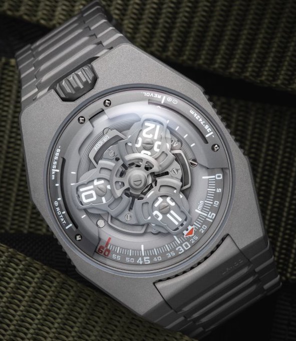 At Dubai Watch Week Urwek unveiled its new UR 100 Full Titanium Jacket automatic Caliber 12.02..