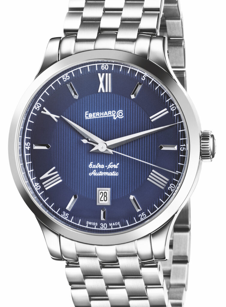 Passiamo all’iconico Extra-Fort con quadrante blu, colore non solo molto attuale, ma legato all’intera scelta cromatica della marca, non a caso recentemente avevano scritto Blu Eberhard (per quanto Mario Peserico, durante la presentazione, abbia escluso di poterlo rendere riservato).