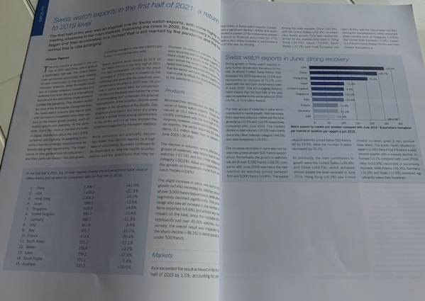 GWD closed yesterday, it’s too early to know results, waiting for them, here figures about Swiss watch exports during first half of 2021 published by FH, compaired with data of 2019.