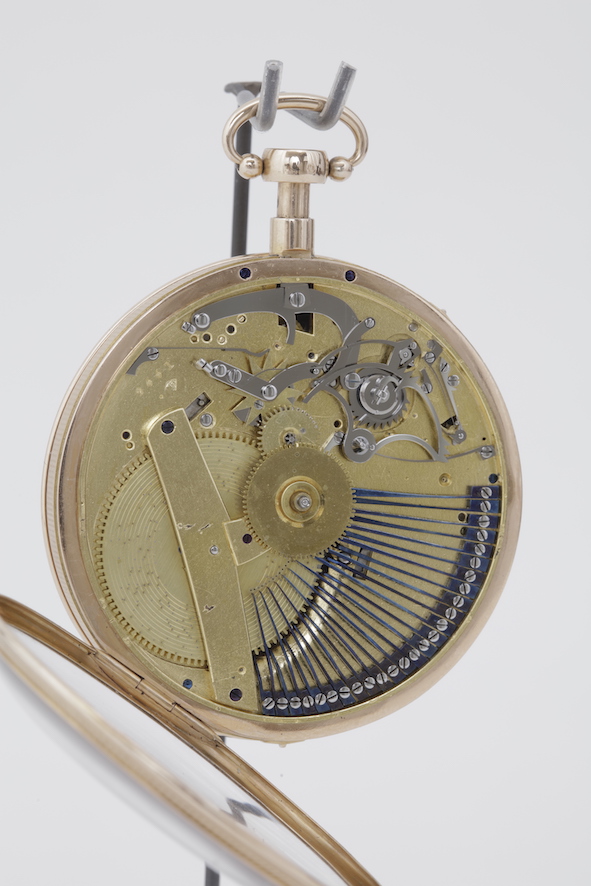 Tra i modelli musicali spicca un esemplare dei primi decenni del XIX sec. firmato Piguet et Meylan, nella foto sopra. Al suo movimento, una ripetizione ai quarti su due timbri, collaborarono Isaac Daniel Piguet e Philippe Samuel Meylan; a ogni passaggio dell’ora un carillon mette in funzione le 26 lame per far ascoltare una delicata melodia, che si può fermare quando si vuole.