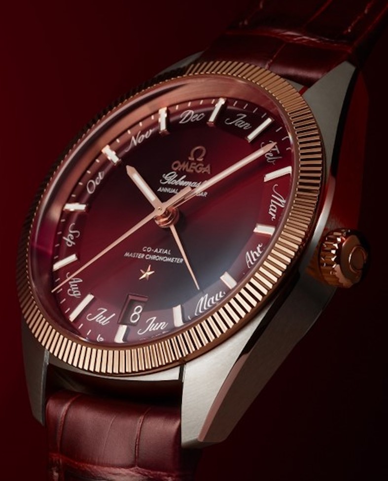 La versione con quadrante Borgogna ha la lunetta lucida in oro SednaTM 18 carati, la lega in oro rosso di Omega, impiegata anche per corona, lancette, indici, lancette, logo e stella.