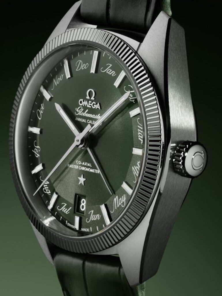 Sono tre i nuovi Globemaster Calendario annuale, certificati Master Chronometer, cassa ø 41 mm, lunetta zigrinata e quadrante “Pie-Pan” ispirato ai primi Constellation del 1952 che riporta i mesi dell’anno, mentre sul fondello in vetro zaffiro antigraffio è incastonato l’emblema dell’Osservatorio Centrale che ha premiato tante volte gli Omega per la loro precisione.