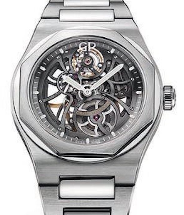 Nato nel 1975 sull’onda del successo di una pellicola italiana, il Laureato è sempre stato sempre un modello di punta per la maison di La Chaux-de-Fonds, quello con il movimento squelette, il più recente, è stato realizzato in più versioni (dall’oro all’acciaio alla ceramica). Il movimento è il Calibro GP01800- 0006 dall’intrigante color grigio antracite (è trattato al rutenio), che mostra il treno degli ingranaggi (A/h 28.800, carica manuale, 25 rubini).