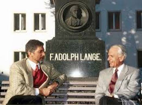 Questo uomo dinamico al quale il comparto orologiero deve molto, è scomparso, a soli 58 anni il 1° Ottobre di vent’anni fa e nella rete sono stati in molti a ricordarlo con ammirazione e rimpianto, pubblicando anche diverse interviste che aveva rilasciato a molte testate; soloPolso si è affiancato a ciò che ha scritto in quella data, la rivista JSH e oggi, ricevendo i due Comunicati Stampa dell’azienda di Glashütte, si associa al rimpianto per la perdita di un imprenditore che avrebbe potuto dare ancora molto al comparto in questi anni; nella foto pubblicata Blümlein è a Glashütte con Walter Lange, di fronte al monumento dedicato al fondatore dell’azienda.