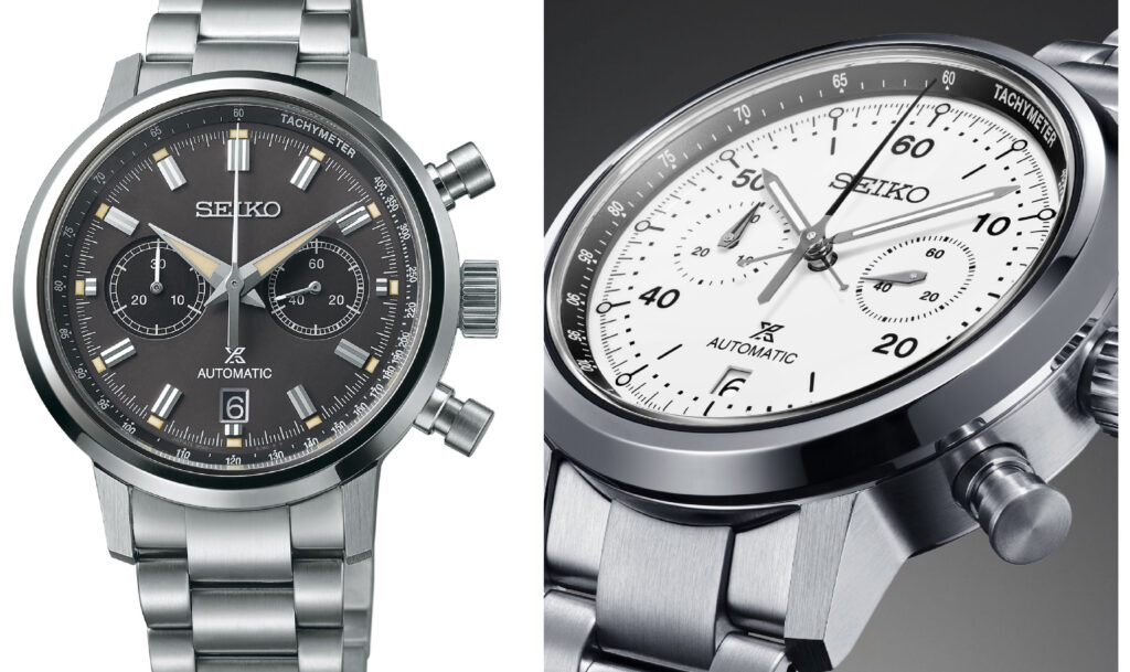 Oggi lo Speedtimer torna in più versioni; nella foto sopra a destra, con quadrante bianco, il modello in tiratura imitata a mille esemplari, Calibro 8R46, 28.800 A/h, 34 rubini, riserva di carica 45 h: a sinistra con quadrante antracite quello con la stessa cassa, il medesimo bracciale e il Calibro 8R46 con due sottoquadranti invece dei tre del Calibro 8R48 e finestra della data a ore sei; l’innesto della cronografia è verticale e la ruota è a colonne. Il quadrante si ispira al primo cronografo da polso di Seiko e del Giappone, il Crown Chronograph del 1964, soprattutto per i pulsanti e gli indicatori sul rehaut. La cassa in acciaio inossidabile, w.r. a m.100, con fondo a vista a vite, ha un diametro di mm 42,5 ed è completata dal bracciale analogo con triplice chiusura pieghevole e pulsante di rilascio, ma è disponibile anche un cinturino in pelle.