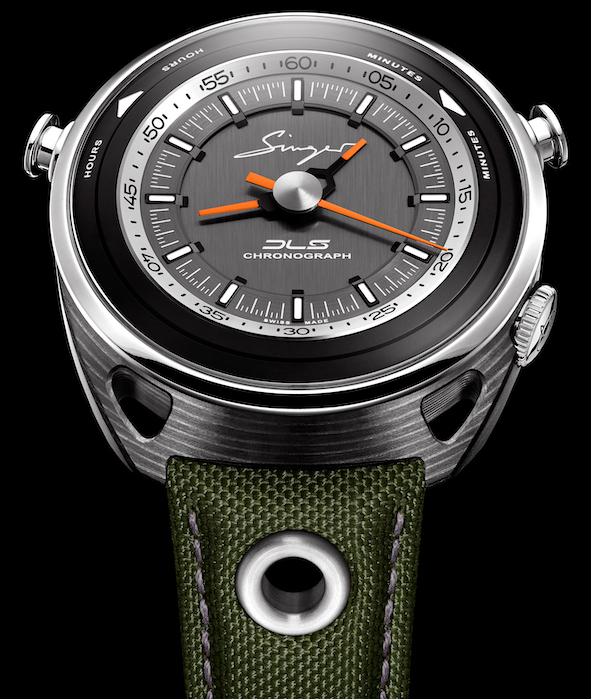 Nel 2018 questo orologio ha vinto il GPHG nella categoria cronografi, oggi si presenta agli appassionati nell’edizione speciale, Singer Track 1 DLS, riservata ai proprietari di un’auto DLS che possono chiedere particolari personalizzati.