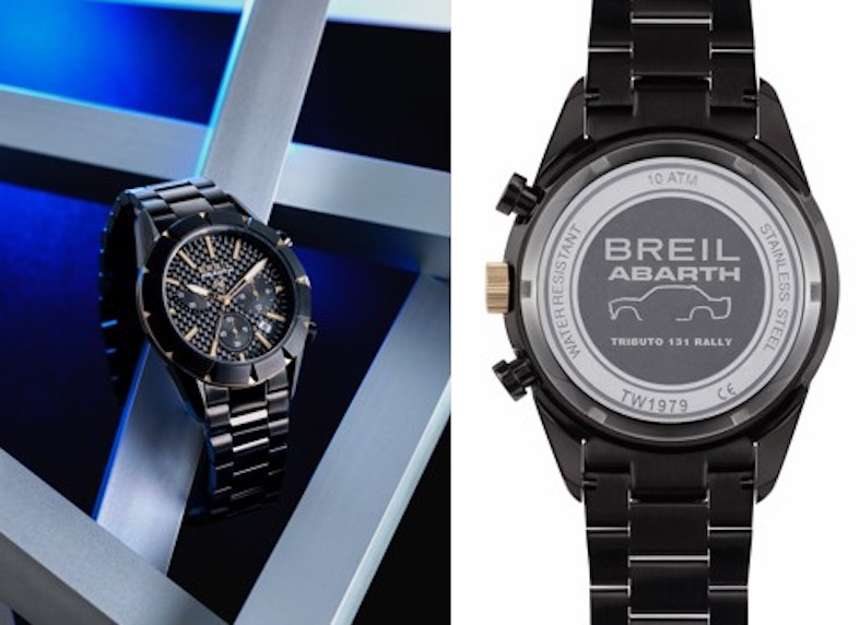 Oggi, per ricordare la pluriennale collaborazione, la vettura che ha ispirato il nuovo cronografo Breil è la nuova Abarth 695 tribute 131 Rally. La sagoma della Fiat 131 Abarth Rally, che quarant’anni fa disputò la sua ultima gara, è tratteggiata sul fondello; anche questa automobile verrà prodotta solo in 695 esemplari.