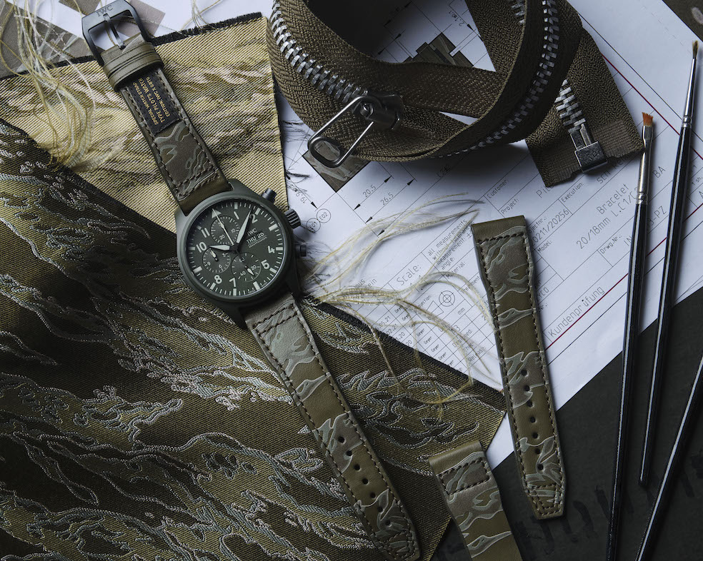 La pelle è infatti trattata non solo graficamente, ma anche cromaticamente, in modo tale da assumere un aspetto mimetico. La collezione IWC x SBTG in tiratura limitata è disponibile in due misure, dal 20 di Ottobre 2022 online su IWC.com.