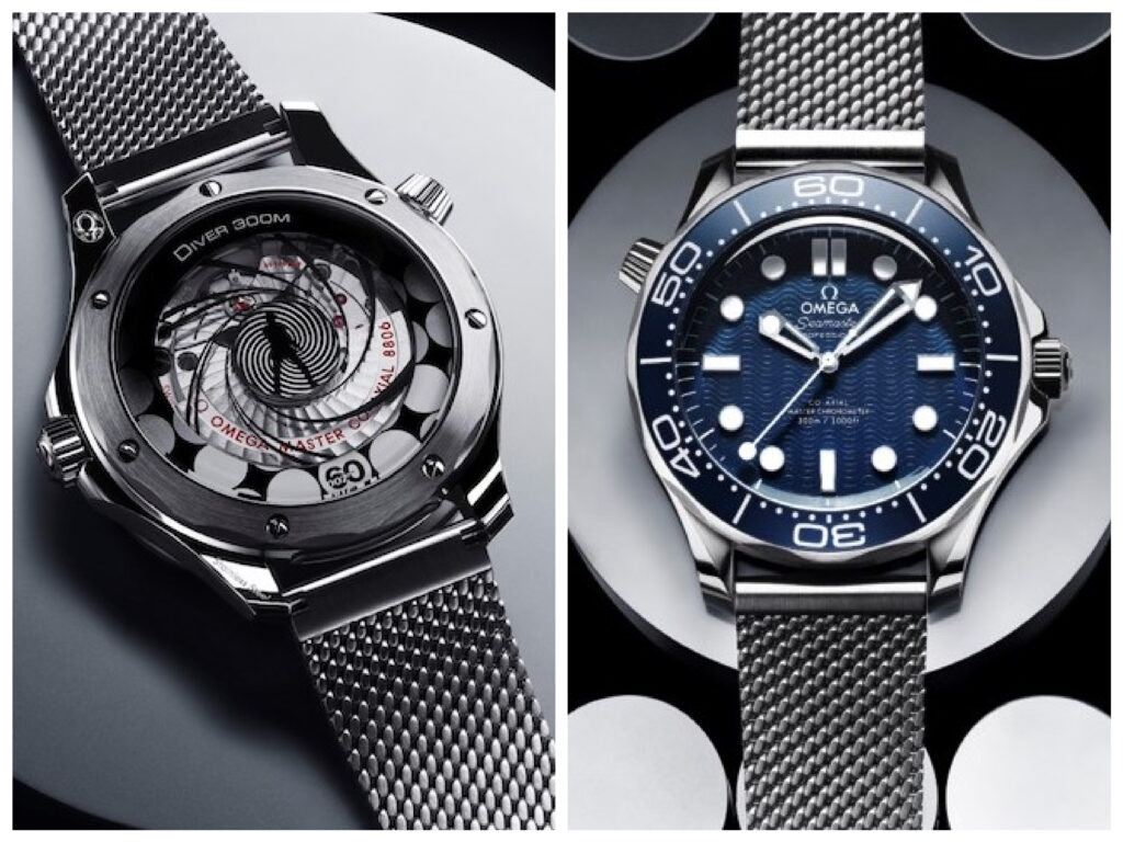 Questi sono i modelli scelti per il 60° Anniversario: Seamaster Diver 300 M in acciaio, cassa ø 42 mm, w.r. a m. 300, ispirato al modello indossato da Bond in Golden Eye; quadrante e ghiera in alluminio anodizzato blu, sul primo motivo a onde e invece del triangolo per la scala di immersione il numero 60; sul fondello una realizzazione animata, la pistola di J.B.che ruota con la lancetta dei secondi e quindi sempre in movimento. All’interno il Calibro Co-Axial Master Chronometer 8806. Il bracciale in maglia milanse ha lo stile di quello indossato in No Time To Die. Ai collezionisti farà anche piacere la riedizione del primo astuccio.