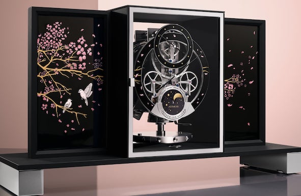 Ieri alla Fondazione Cini nell’isola veneziana San Giorgio è stata inaugurata Homo Faber (chiuderà il 1° Maggio) dedicata all’artigianalità, riunendo 15 mostre che celebrano il savoir-faire di eccezionali maestri artigiani provenienti da tutta Europa; ospiti d’onore dell’evento anche 12 Tesori Nazionali Viventi giapponesi. Tra gli oggetti esposti c’è un’Atmos speciale, la Blossoms Cherry realizzata in esemplare unico nella divisione Mestieri Rari di Jaeger.LeCoultre.