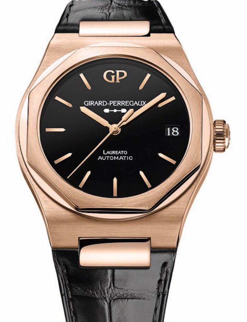 New version of Laureato automatic with rose gold case and onyx dial, gold bracelet or alligator strap, suitable from next September.