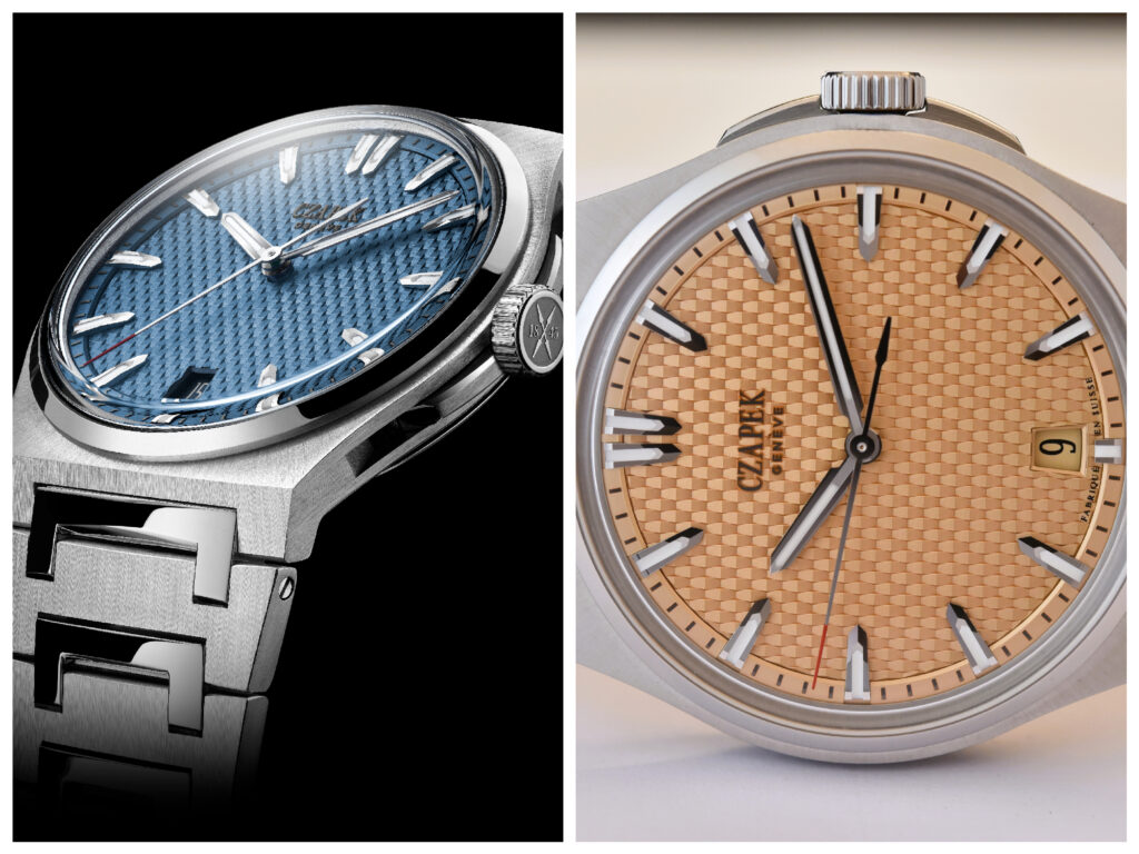 Per entrambi i quadranti flinqué si può scegliere il 12 in cifre arabe o con doppio segno geometrico e la lancetta dei secondi può essere tutta in acciaio o tutta rossa o solo con la punta rossa; infine la decorazione è il disegno registrato “Stairway to Eternity”, un motivo a trapezio che sulla superficie tridimensionale stampata crea una serie di ombre. Per quanto riguarda invece i colori la tonalità del Passage de Drake Salmon è stata ottenuta con un trattamento galvanico, quella del Glacier Blue con trattamento PVD e il partner specializzato è stato la Metalem. Altre opzioni personalizzate sono un’incisione sul fondello, il bracciale spazzolato per avere un aspetto più sportivo e un cinturino omaggio in caucciù o pelle; a proposito poi del bracciale in acciaio ricordiamo che è dotato del sistema di microregolazione introdotto dallo scorso Dicembre.