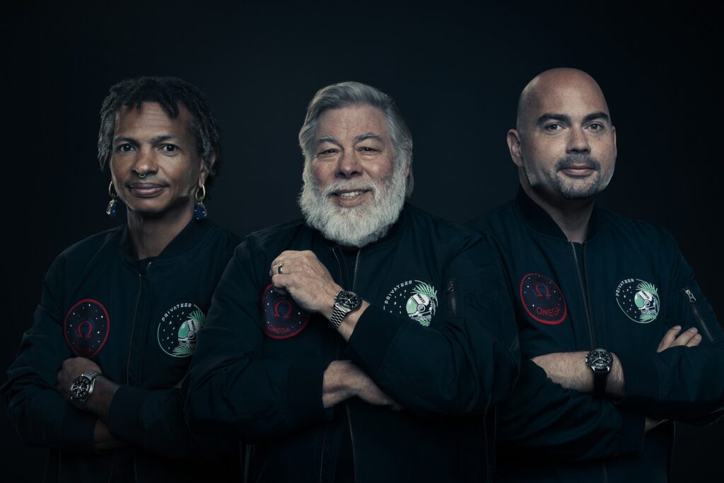 Come per le missioni Apollo, con lo Speedmaster Moonwatch, quella attuale è condotta da un equipaggio di tre persone: il cofondatore di Apple Steve Wozniak, il CEO e fondatore di Ripcord Alex Fielding, e il dottor Moriba Jah, studioso di astrodinamica e ambientalista spaziale.