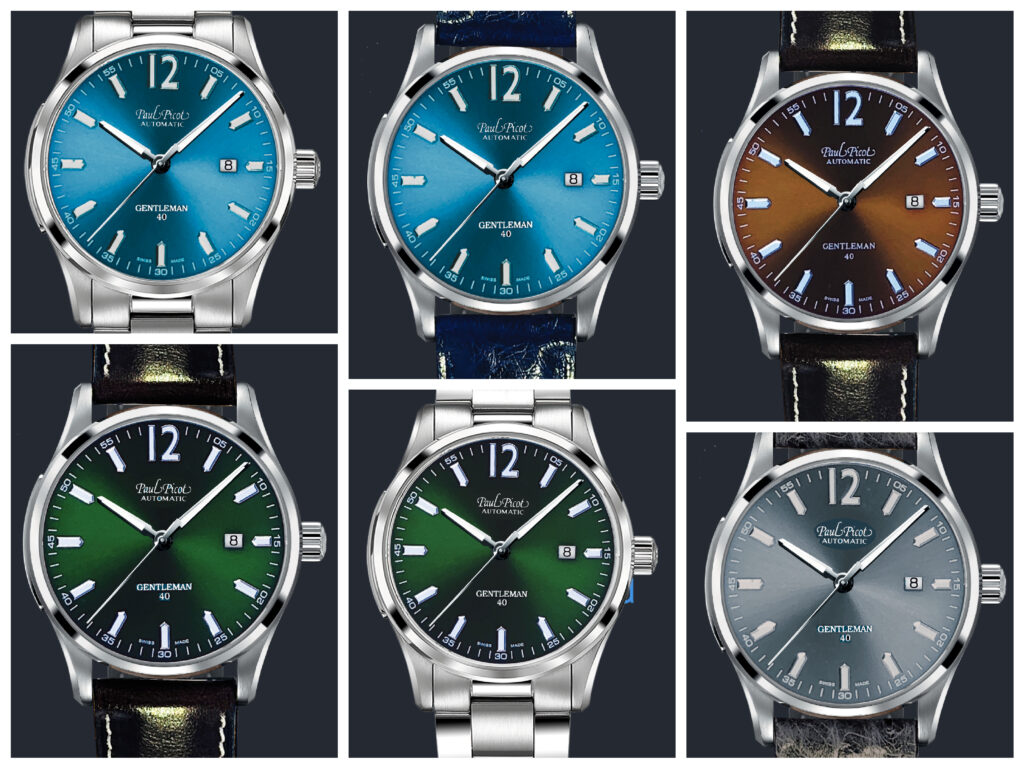 Nella collezione Gentleman con movimenti automatici e cassa in acciaio ø 40 mm, arrivano quest’anno modelli con bracciale o cinturino in quattro diverse tonalità di quadrante lavorato a sunray.,