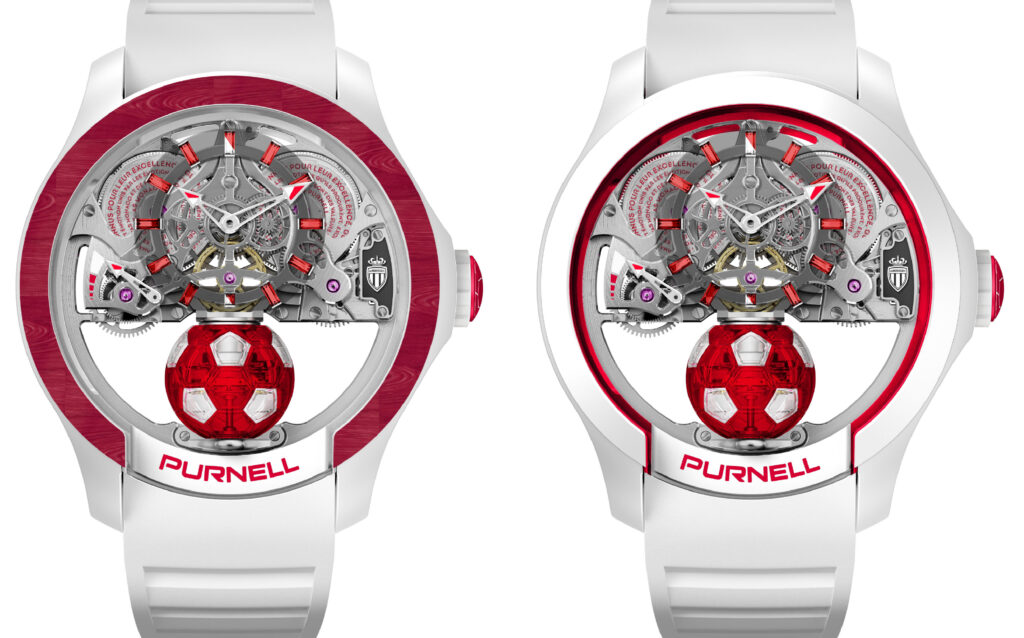 Con la collaborazione del Maestro orologiaio Eric Coudray, Purnell ha realizzato per l’AS Football Club del Principato di Monaco, di cui è Official Timekeeper, una prima Mondiale: un tourbillon la cui gabbia, in cristallo di rocca dipinto, a forma di pallone da calcio, ruota in 30 secondi.