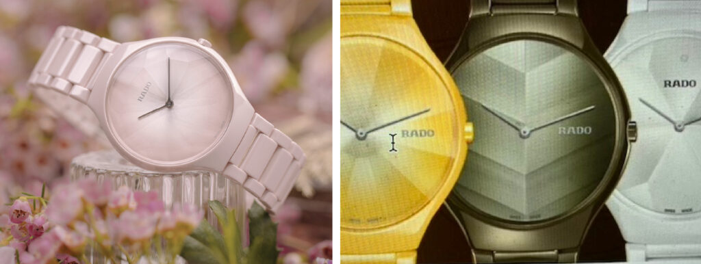 L’anno scorso la collezione ha visto tre modelli denominati Rado True x Great Gardens of the World, con dettagli come foglie di quercia, fiori di gelsomino, madreperla e splendidi colori per le sottili casse monoblocco in ceramica hi-tech, .quest’anno i 4 segnatempo mostrano colori adeguati ai mesi che rappresentano e un cristallo sagomato a protezione del quadrante con due lancette.