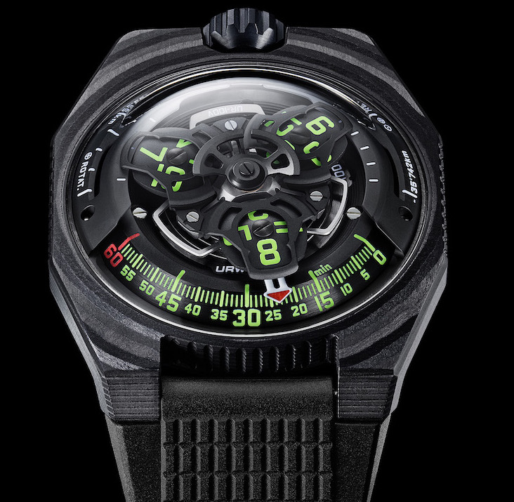 Un binomio tecnologico e cromatico nel nuovo Urwerk presentato oggi 2.02.22, data scaramantica con tutti quei due.