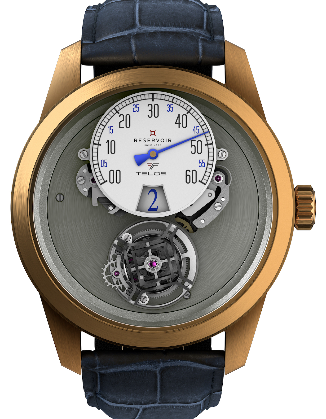 RESERVOIR X TELOS WATCH – Dalla loro collaborazione è nato il Tiefenmesser Tourbillon con ore saltanti e minuti a retrograde la cui estetica, stile Regulaeur, si riallaccia agli orologi ideati in un lontano passato per la Marina. il movimento Made in Swiss, è a carica automatica con doppio bariletto e Grand Tourbillon a ore 6, carica di 60 h, 46 rubini, bilanciere a inerzia variabile, A/h 28.800. La cassa, ø 43 mm è in bronzo e ll quadrante in smalto bianco Grand Feu.
