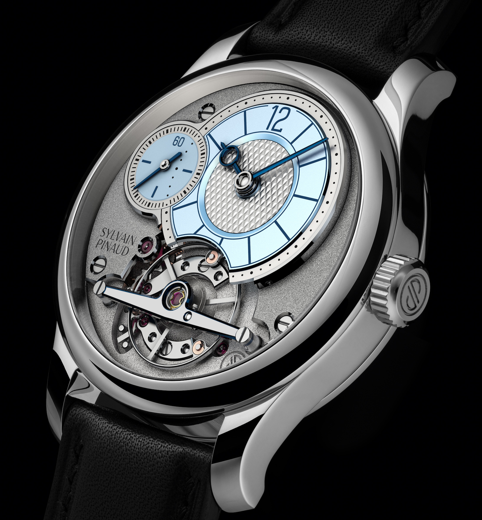 SYLVAIN PINAUD – Con la cassa in acciaio e un quadrante multilivello lavorato a guillochage con due toni di azzurro, Origine ha ore e minuti decentrati e dall’ampia finestrella ø 13.2 mm, mostra il bilanciere con spirale Phillips. Il movimento è a carica manuale e la sua architettura è stata ideata tenendo conto della precisione e della finitura tradizionale della più bella orologeria.