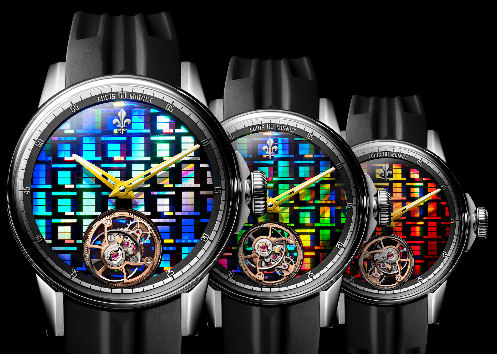 LOUIS MOINET – Il Tourbillon Art-Tech, presentato per OW, in prima assoluta, unisce due tecnologie: quella della migliore tradizione meccanica e quella legata all’impiego di nuove possibilità offerte dai microprocessori. Sul quadrante spicca a ore 6 la gabbia dello scappamento a tourbillon mentre il fondo del quadrante realizzato a wafer presenta diverse colorazioni. La cassa, in titanio grado 5 ø 40,7, spessore 15,12 mm accoglie il movimento con tourbillon volante (A/h 28.800, 26 rubini, carica 96 h). Cinturino preformato in caucciù con fibbia deployante trattata PVD nero.