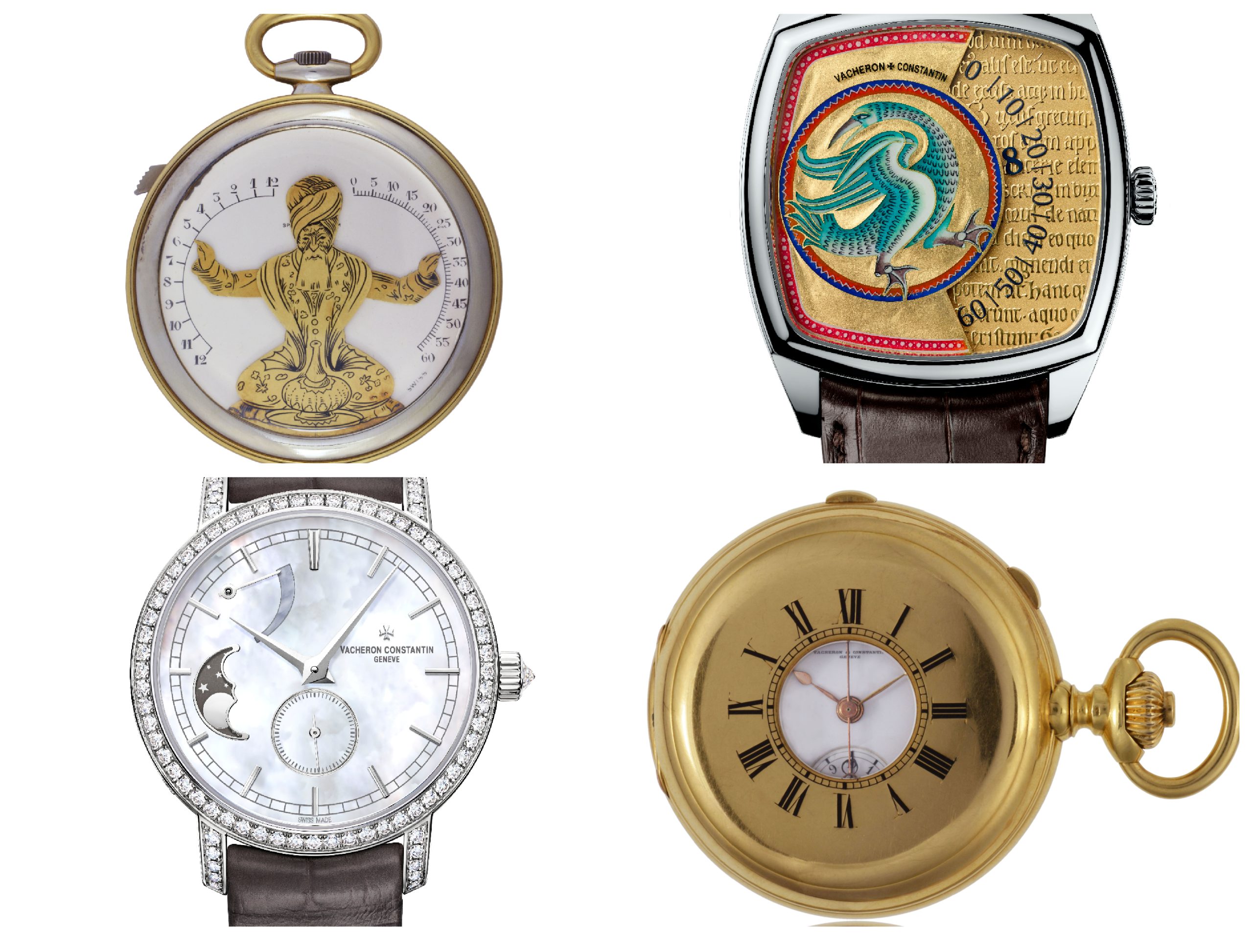 Nella fotografia che pubblichiamo i capolavori del Sec.XIX con il celebre Tasca a in cui le braccia indicano ore e minuti e un cronografo rattrapante, sono affiancati a due modelli abbastanza recenti, un modello maschile della collezione Métiers d’Art del 2015 e un elegante Traditionnelle femminile con diamanti e l’indicazione delle fasi di luna del 2014. Tutti testimoniano come Vacheron Constantin non abbia mai smesso di esser4e ai vertici della meccanica orologiera confermandosi l’unica Maison che dal 1755 non ha mai interrotto di produrre splendidi segnatempo.
