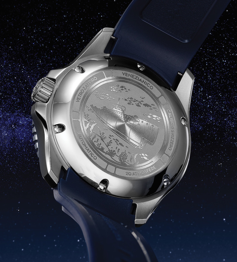Il nuovo Nereide dunque continua ad affascinare chi ama Venezia e la sua storia, presentando inoltre sul fondello un’immagine del sommergibile Nereide, varato nel 1913; sullo sfondo il Cantiere dove è stato costruito, insieme al gemello Nautilus, dal Regio Cantiere Navale veneziano.