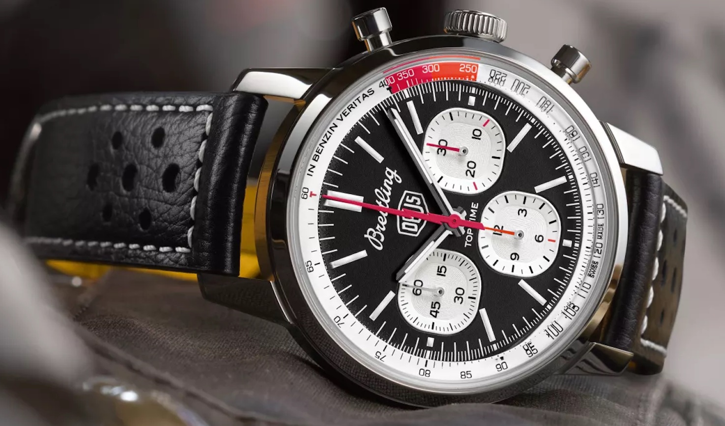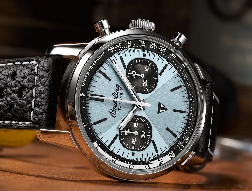 Più recente la collaborazione tra Breitling e la casa motociclistica britannica Triumph nata nel 2022 con il lancio di una motocicletta Breitling Speed Twin Limited Edition e di due orologi Top Time Triumph – uno realizzato in 270 esemplari numerati per i proprietari della moto e l’altro disponibile per gli appassionati. Nell’attuale edizione sul quadrante azzurro ghiaccio con scala tachimetrica, ii loghi Breitling e Triumph a ore 12 e 6 e un dettaglio speciale (un motivo a papillon nato negli anni 60 oggi integrato discretamente con una spazzolatura del metallo e quindi visibile solo in particolari condizioni di luce), il movimento di Manifattura Breitling 01 è visibile dal fondo in vetro zaffiro. Cinturino in pelle di vitello nera o bracciale in acciaio con lavorazione a maglia milanese.