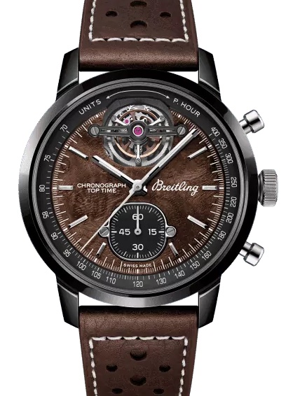 Nella più recente collezione Top Time Classic Cars il motore dei cronografi è adesso all’altezza di quelli montati sulle 4Ruote (o forse ancora meglio…); è infatti il Calibro B21, sviluppato in collaborazione dalla Maison di La Chaux-de-Fonds e La Joux-Perret (manifattura specializzata nella produzione di movimenti); lo scappamento è a tourbillon e la cronografia con ruota a colonne.