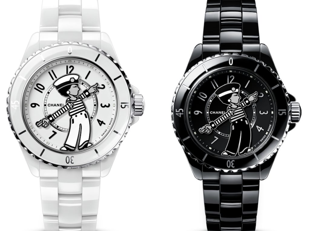 Le versioni più recenti dei J12 sono quelle dei Mademoiselle La Pause, dedicate alla figurina stilizzata di Mademoiselle Coco, ispirata da fotografie della stilista nel giardino della sua villa “La Pause” nel Sud della Francia negli anni Trenta. La tradizionale cassa in ceramica alta resistenza e acciaio w.r. a m.200, nera o bianca, ø 38 mm con lunetta girevole unidirezionale e corona a vite in acciaio con cabochon in ceramica, diventa così un modello unisex.