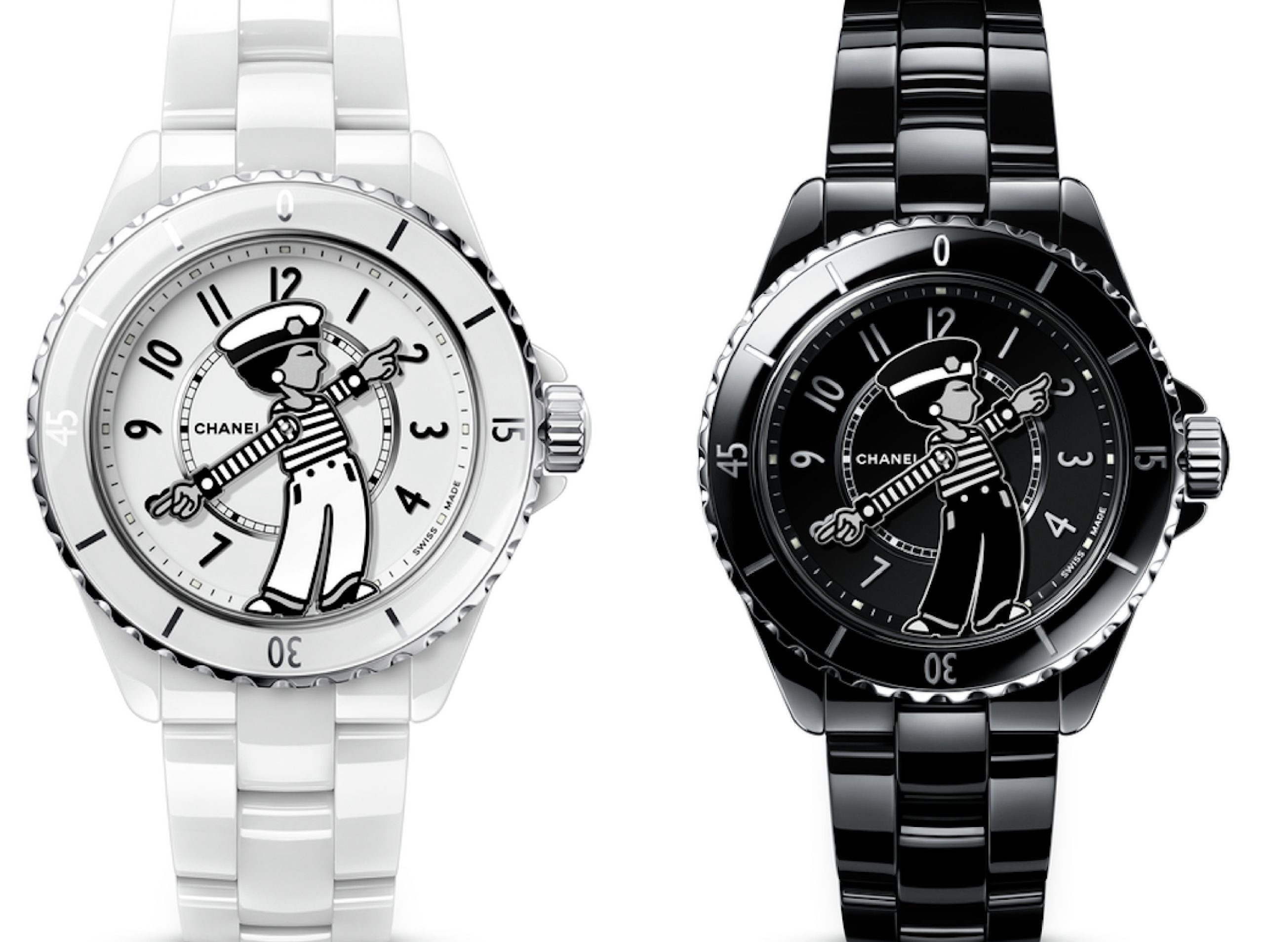 Sui quadranti laccati, neri o bianchi, Coco indossa comodi pantaloni larghi e una maglietta a righe in stile marinaro, dando vita a un messaggio frizzante come una coppa di champagne, proprio nello stile di Mademoiselle. Il movimento è il Calibro di Manifattura automatico 12-1 prodotto da Kenissi, di proprietà Chanel, e ha una riserva di carica di 70 h. Sul fondo in vetro zaffiro la scritta Limited Edition. infine il bracciale in ceramica ad alta resistenza accentua la sportività del modello. Per chi invece preferisce il romanticismo di un cielo stellato, c’è il J12 ø 38 mm con quadrante illuminato dalla cometa.