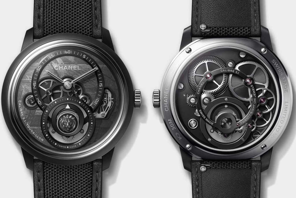 MONSIEUR DE CHANEL TOURBILLON METEORITE: edizione limitata a 55 esemplari, cassa ø 41 mm in acciaio, quadrante in meteorite, movimento Calibro 5 di Manifattura, carica manuale con scappamento a tourbillon.