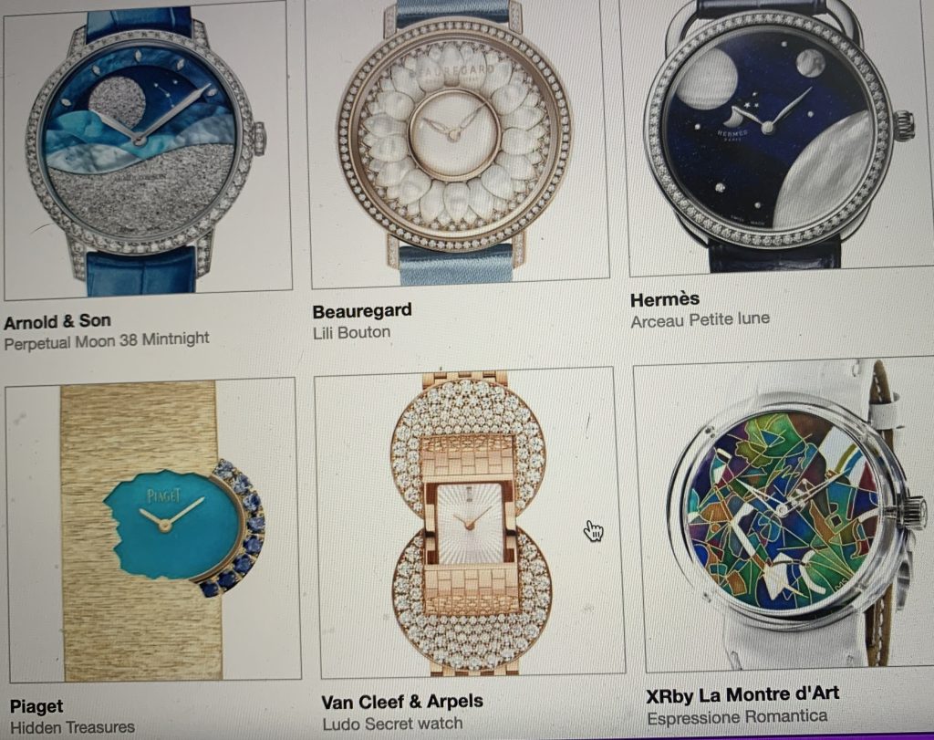 Proprio oggi abbiamo pubblicato fra le novità al G.W.D. il Perpetual Moon di Arnold & Son (18 esemplari) modificato nella parte dimensionale, mentre il quadrante è ancora quello della passata edizione. Una piccola luna anche per Hermès e un quadrante fiorito per Beauregard. Secondo noi Piaget e Van Cleef & Arpels sarebbe stati meglio inseriti fra i gioielli e la Montres d’Art di XRby nell’artigianato artistico. Mancano all’appello questi Marchi che si sono iscritti: Breitling, Chopard, Claude Meylan, Czapek, Gucci Timepieces, Dior, Louis Vuitton, Maurice Lacroix, Nomos.
