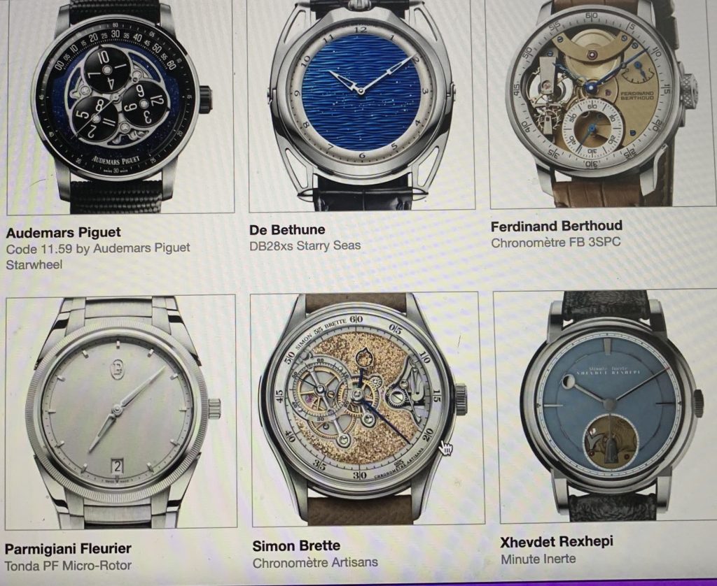 In questa folta categoria deve essere stato difficile selezionare solo sei segnatempo. Mancano all’appello Arnold& Son, B.R.M., Bovet 1822, Charles Zuber, Chopard, Czapek, Gran Seiko, Gucci Timepieces, Hermès, Laurent Ferrier, Louis Vuitton, Lucky Harvey, LYH, Mauron Musy, Norqain (peccato), Raketa, Reservoir, Ressence, Schwarz Etienne, Ilobe, Yosuke Sekiguchi.