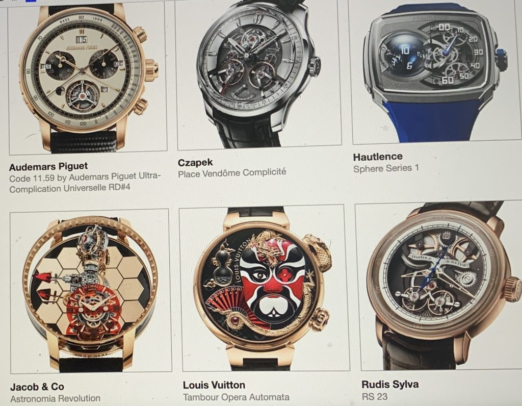 Mancano all’appello ArtyA, Audemars Piguert, Blanchet, Breitling, Gerald Charles, Gucci Timepieces, Hautlence, Jacob &Co, Louis Vuitton, Waldhoff