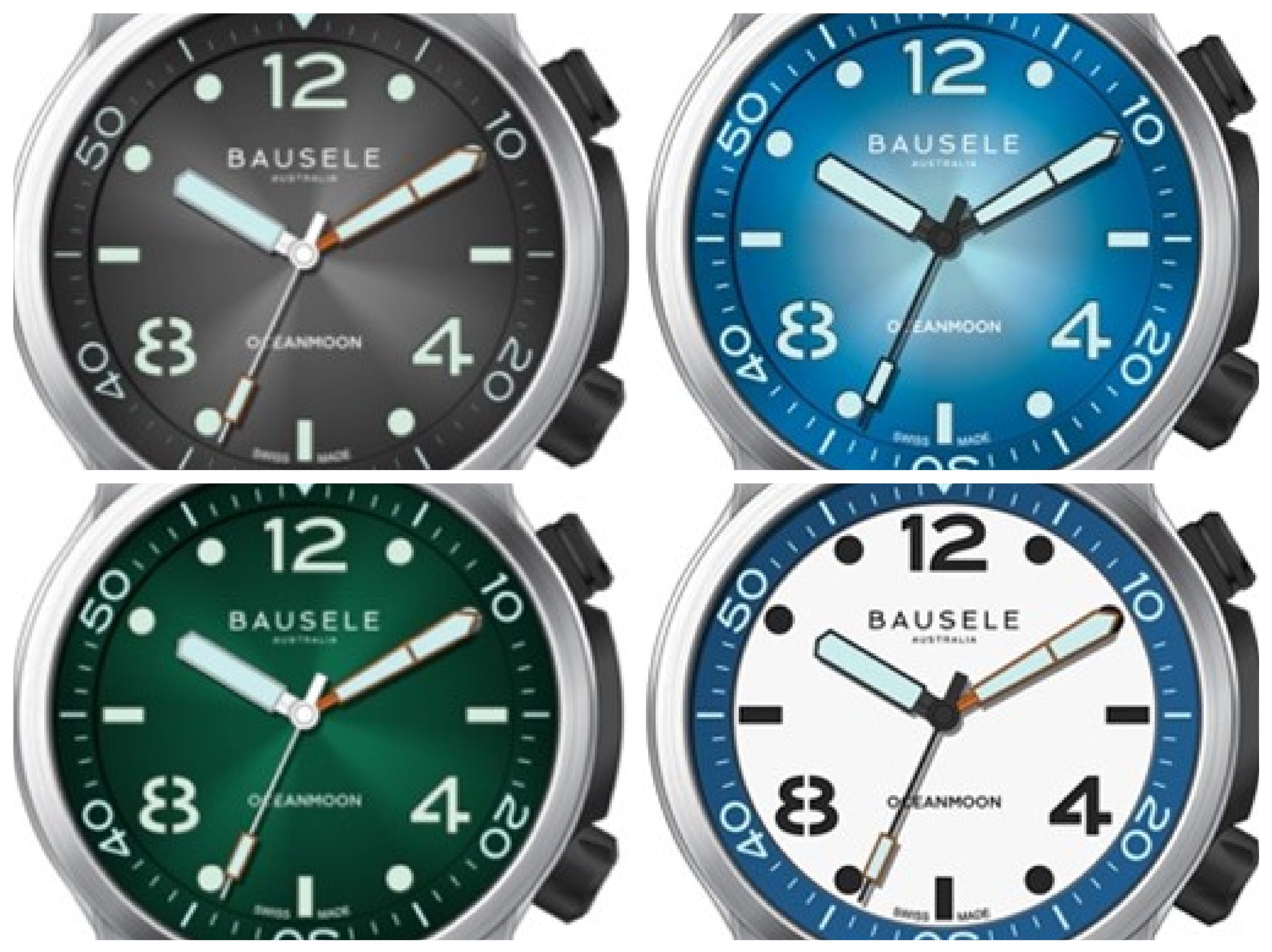 BAUSELE è un altro giovane Marchio australiano fondato da Christoph Hoppe, appassionato di aviazione, (ha realizzato segnatempo con le Forze Armate Statunitensi) e anche per il prossimo GWD arriva un orologio dedicato alla R.AA.F. cioè l’Aeronatica militare australiana realizzato in 200 esemplari. L’automatico Ocean Moon V ha il movimento svizzero Sellita SW200 cassa in acciaio 316L spazzolato w.r. a 20ATM con fondello inciso al laser con il logo e il canguro; quadrante a strati protetto da cristallo di zaffiro, lunetta bidirezionale attivata con la corona alle 2. Quadranti nei colori bianco, blu, nero, azzurro.