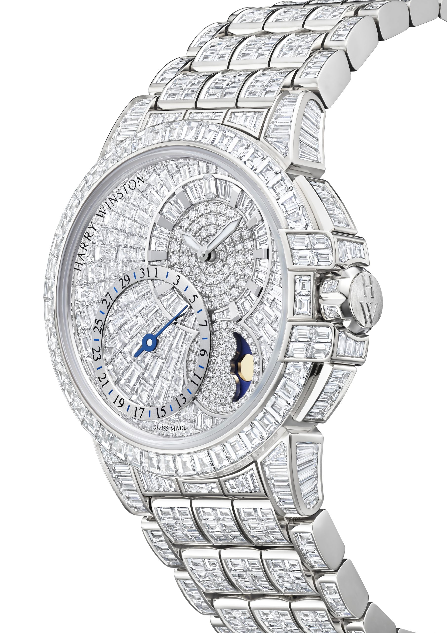 Per il 25° anniversario di questa collezione, Harry Winston ha preparato diverse novità: il progetto Z16 che, per la prima volta, offre un calendario completo, una nuova interpretazione per l’automatico, 42 mm, con data e fasi di luna, proposte per polsi maschili e femminili da indossare in ogni momento dell’imminente Estate e una versione d’alta gioielleria realizzata in soli 5 esemplari.