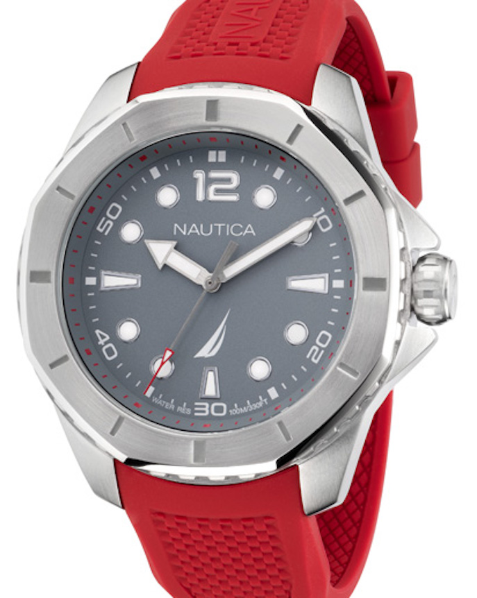 NAUTICA: questo sportivo della collezione Koh May Bay ci introduce nel campo maschile con un segnatempo classico dalla cassa in acciaio ø 46 mm, w.r. a m.100, movimento al quarzo, quadranti blu, grigio scuro, grigio chiaro e nero, con bracciale o cinturino in silicone come quello fotografato; dalla sua ha un prezzo molto contenuto che molte ragazze potranno affrontare per fare una sorpresa al loro boy-friend.