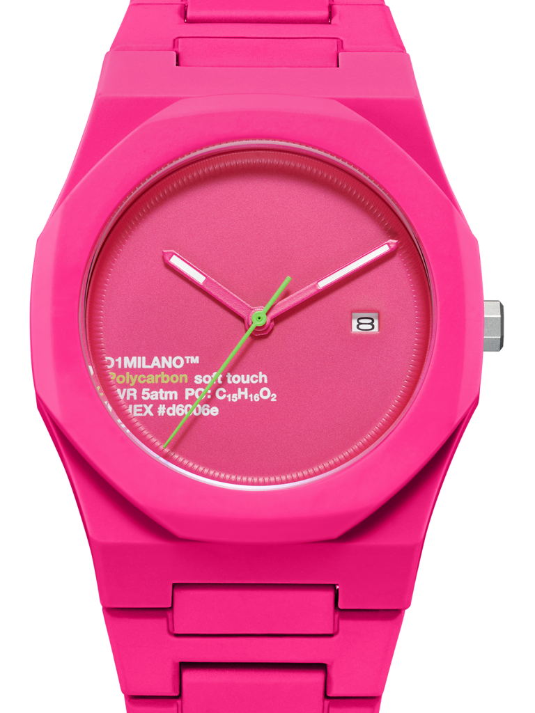 D1 MILANO: fra le novità presentate in gennaio, non poteva mancare un segnatempo in policarbonato rosso che, nella collezione Polycarbon Street, ripropone in questo materiale la cassa e il bracciale dell’orologio di vertice del Marchio. Anche questo orologio, che costa meno di 40 Euro, è adatto per i giovanissimi.