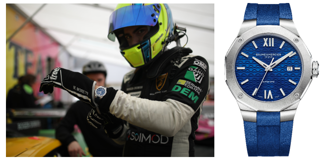 Lo testimonia Marzio Moretti appassionato di auto e motori da quando ragazzino correva su un kart; nel 2018 è entrato nel mondo delle monoposto e in questi anni ha partecipato a molte gare. Nello scorso Novembre agli ultimi due round del campionato Lamborghini Super Trofeo Europa e alle World Finals sul circuito di Vallelunga, ha conquistato un secondo posto che gli ha garantito di posizionarsi terzo assoluto nel campionato Europeo. Sul podio, per l’occasione, ha indossato il Riviera 10619, automatico con datario, un orologio adatto anche per un impiego quotidiano. Laura Rossetti, brand manager di Baume & Mercier Italia, ha espresso la sua soddisfazione accogliendo il giovane pilota nell’ambito dei B&M Friends.