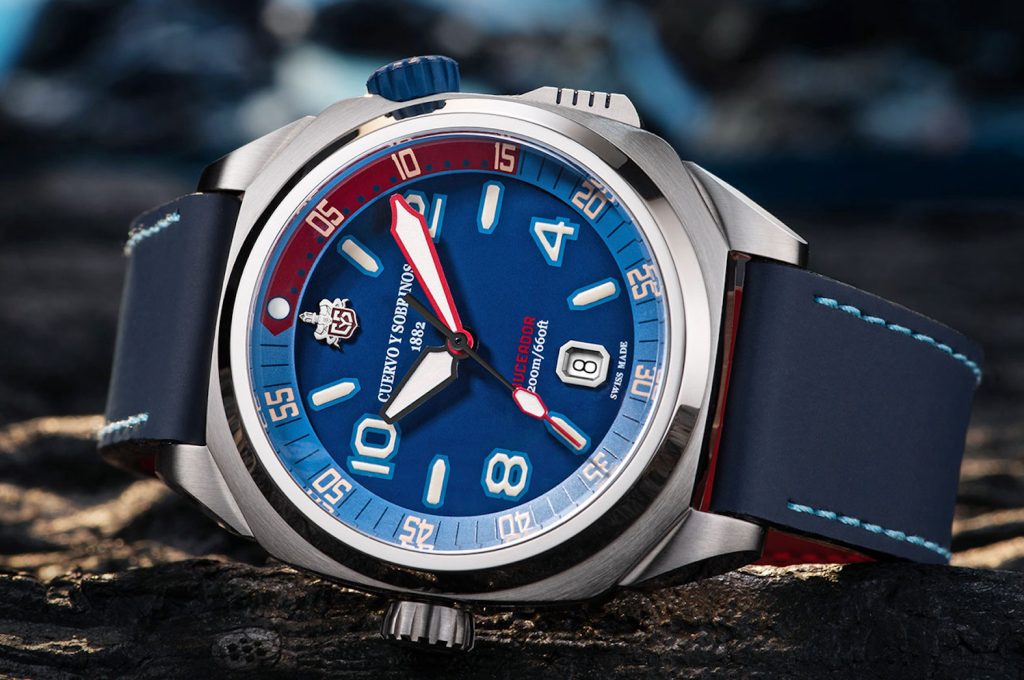 Nel 2004 nacque il primo Buceador (in spagnolo Palombaro) del Marchio Cuervo y Sobrinos. Dopo quasi vent’anni, nel 2023, il Palombaro torna con una cassa in acciaio (anche trattata DLC nero) ø 43 mm, w.r. a m.200; sul fondo l’incisione di un subacqueo circondato da pesci tropicali. Diverse e molto attuali le altre caratteristiche.
