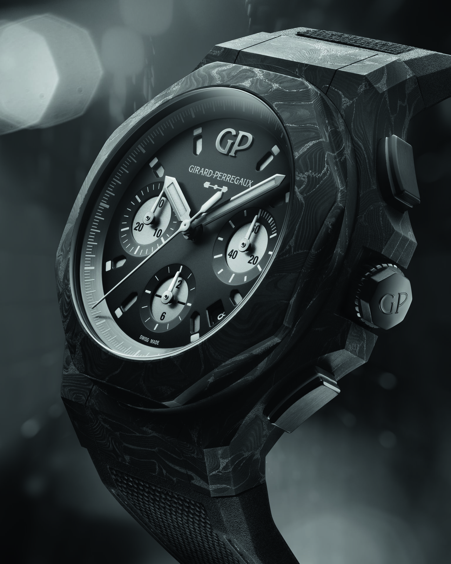Girard Perregaux torna su una delle sue collezioni icona, quella del Laureato, presentando al G.W.D. 2023 il Laureato 8 Tech: cassa in carbonio ø 44 mm, w.r. a m.100 con fondo in vetro zaffiro.