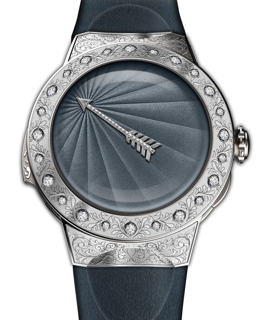 LEROY – Il famoso Marchio ottocentesco fatto rivivere nel mondo orologiero attuale, è presente per la prima volta a Only Watvch con un Ripetizione minuti in una cassa in titanio Grado 5 levigato ø 43 mm,, lunetta e fibbia sono inoro bianco e palladio, accuratamente incisi e impreziositi da 24 diamanti. Il quadrante lavorato a soleil ruota, le ore sono indicate dalla freccia fissa rodiata. Il movimento, accuratamente rifinito e rodiato, è il Calibro manuale dotato di ripetizione minuti (su due gong le ore e su altri due i minuti) e tourbillon volante; la riserva di carica è di 90 h.