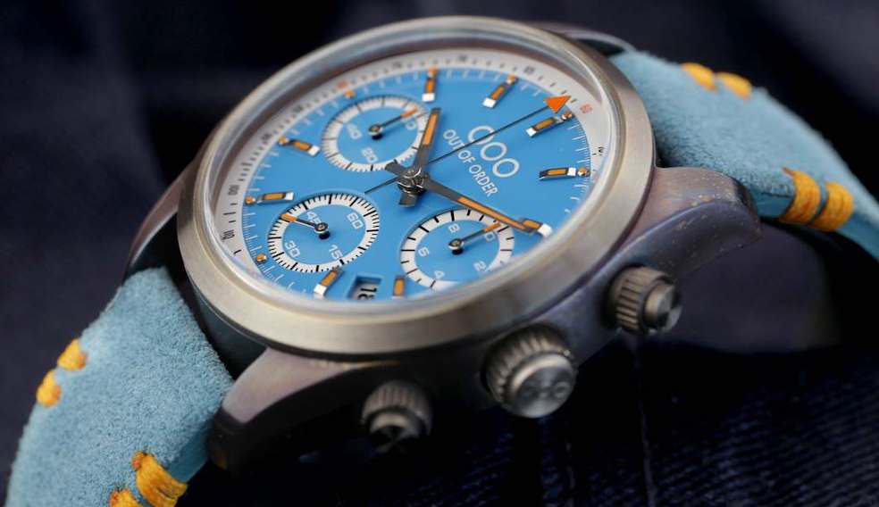 Out Of Order is ten years old and in 2023 is offering a new Quartz Ccronograph and six self-winding watches, sall with nice colored dials.