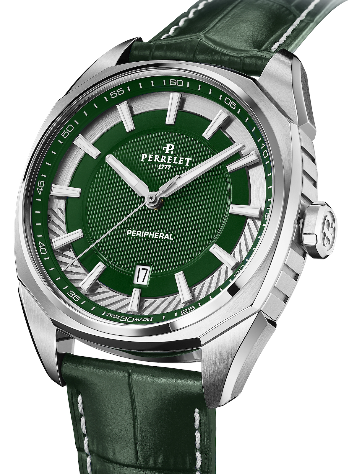 A Time to Watches, fra pochi giorni, Perrelet espone anche il suo automatico LAB Peripheral con il nuovo quadrante verde smeraldo che si è aggiunto ai precedenti nero e blu.