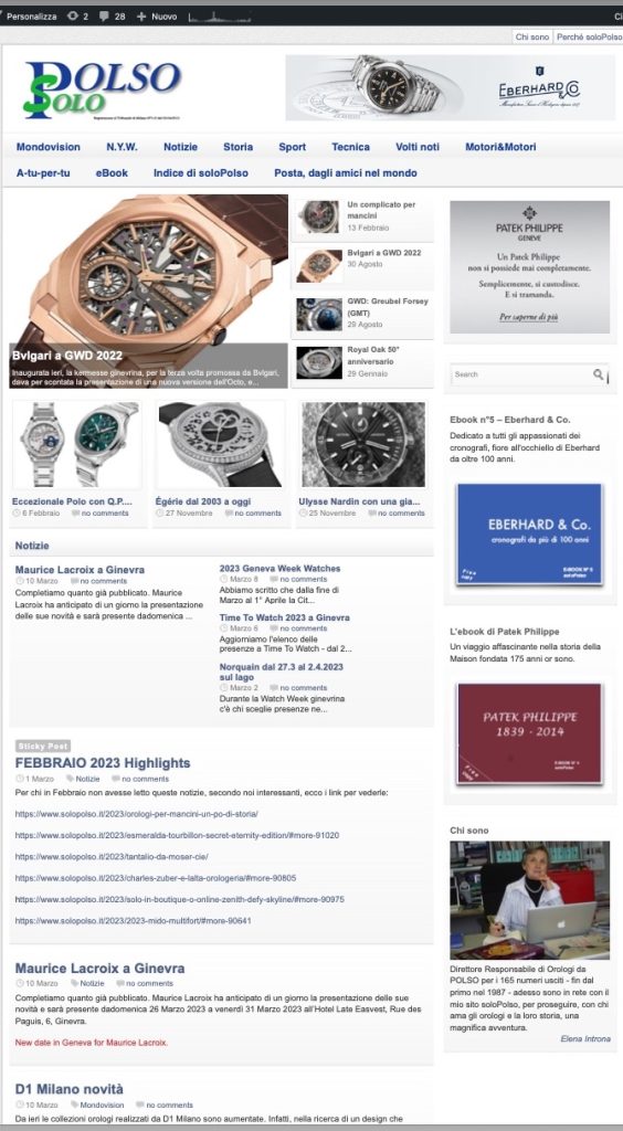 A very personal Anniversary: ten years online of soloPolso (www: solopolso.it) the Magazine registered on March 2013 when the paper revue orologi da POLSO (I was director of) was closed. Really a niche within the niche of the watch international market, but nevertheless a magazine for people loving mechanical movements together with watchmakig history. Today soloPolso is 10 years old and I wish to thank all my followers.
