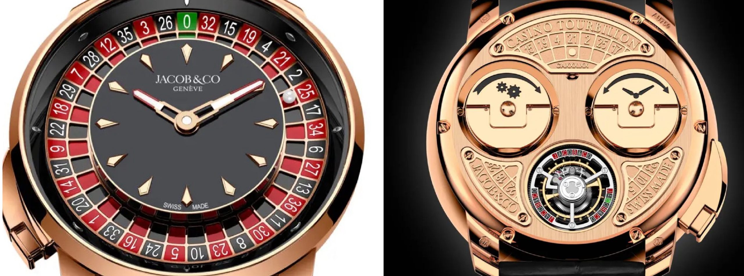 Nella collezione Astronomia di Jacob & C sono state realizzate diverse versioni dedicate al gioco d’azzardo, semplici (si fa per dire) o complicate con altre funzioni astronomiche. Nello scorso Marzo J&Co ha presentato il Casinò Tourbillon.