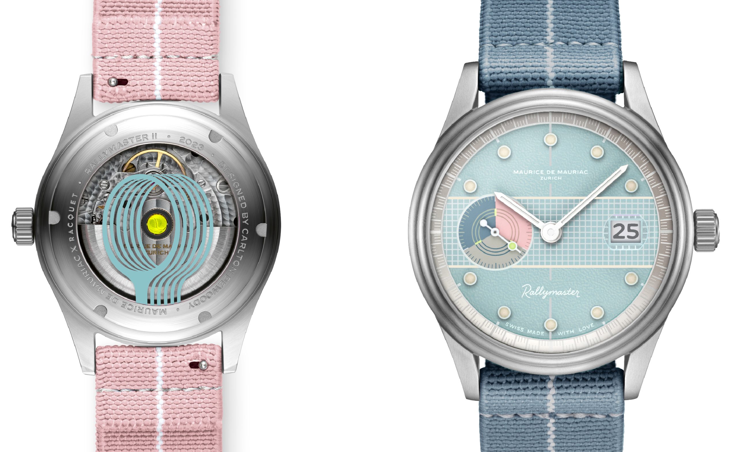 Queste le caratteristiche dell’orologio MdMx x Racquet Rallymaster II. Cassa in acciaio spazzolato, ø 39 mm, lunghezza anse comprese mm 47, spessore mm 12, sul fondo in cristallo di zaffiro e sulla corona, il logo Racquet. Da rilevare il movimento svizzero automatico: un Landeron 24, A/h 28.800, rubini 25, carica 40h. Quadrante azzurro come il campo in cemento, rehaut “rally” e indici applicati a forma di pallina da tennis. I piccoli secondi a ore 9 vedono il tempo in 20″ tanti sono quelli concessi per battere il servizio, la lancetta è trattata Super-LumiNova® Grade X1 B giallo.. Due i cinturini, uno azzurro e uno rosa, che riprendono i colori sul quadrante e indicano che al Grande slam sono ammessi giocatori e giocatrici, il cambio è rapido, la fibbia in acciaio. Mirata anche la confezione che contiene una pallina da tennis dedicata all’evento. La produzione è limitata e le prenotazioni si ricevono online: www.racquetmag.com e mdm-watches.com, durante tutto l’evento che termina il 10 Settembre. Contrariamente a quanto soloPolso fa di solito, indichiamo il prezzo: 1.950 U.$, non poco, ma bisogna tenere conto del valor4e aggiunto dal movimento, dal design di Carlton DeWood, ugualmente appassionato di tennis e di orologi, e dal Marchio zurighese.
