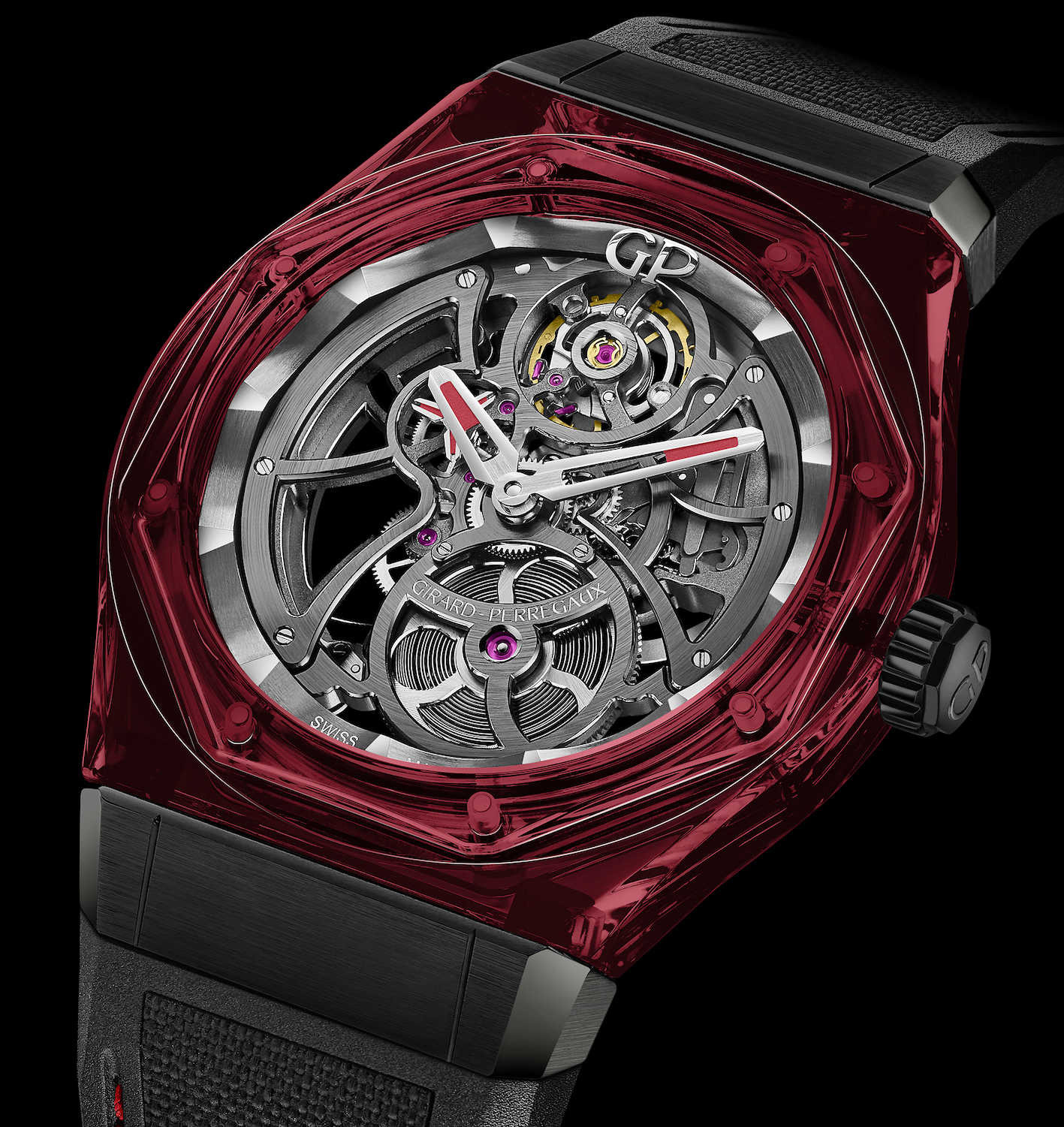 La tiratura è limitata a soli 18 esemplari. Questo orologio presenta molte affinità con il Laureato Absolute Light & Shade (sul quale torneremo prestissimo) ma il nuovo materiale policristallino impiegato (chiamato YAG) e semitrasparente, è molto simile al vetro zaffiro, duro e resistente ai graffi, ma anche in grado di assumere varie tonalità cromatiche. In questo caso è stato scelto un rosso acceso, quel colore che in Cina si affianca a energia, vitalità e prosperità.