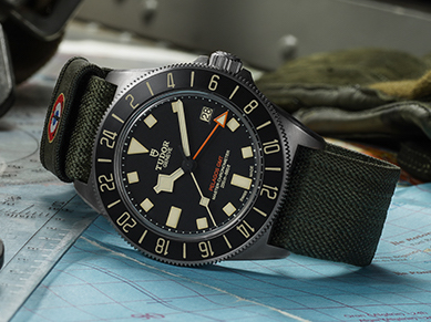 TUDOR Pelagos FXD GMT: nella collezione nata inizialmente in collaborazione con la Marina francese il nuovo Pelagos risponde alle esigenze dell’Aeronautica d’Oltr’Alpe, infatti dispone di una funzione che consente di visualizzare oltre all’ora locale e a un secondo fuso orario, anche “l’ora Zulu”. La novità è stata svelata alla fine di Ottobre. Questi i dettagli: cassa ø 42 mm in titanio, w.r.a m.200, finitura satinata, spessore mm 12,7, barrette fisse per l’attacco del cinturino, corona in titanio con lo scudo Tudor in rilievo; lunetta girevole bidirezionale graduata 24 ore in titanio con disco in ceramica nera, quadrante nero opaco con indici delle ore beige, vetro zaffiro. Il movimento è il Calibro di Manifattura MT5652-U, automatico con rotore bidirezionale e funzione GMT integrata, certificato dal COSC e dal METAS; 65 ore la