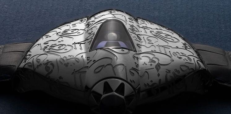 Inserita nella collezione Dream Watch, la capsula DW5 Al-Amal mostra motivi grafici ispirati dalle iscrizioni in arabo sulla facciata del museo. L’architettura compatta del calibro DB2144V2 a carica manuale, appositamente sviluppato per la cassa bombata asimmetrica dell’orologio, oltre a ore, minuti e secondi a carica manuale, mostra le fasi della luna sferica. Il mondo fantastico di Maveric entra così nell’orologeria più tradizionale, ma aperta all’innovazione grafica e cromatica (e secondo noi che risente anche di influenze pregresse indicate, sempre nell’alta orologeria, da MB&F).